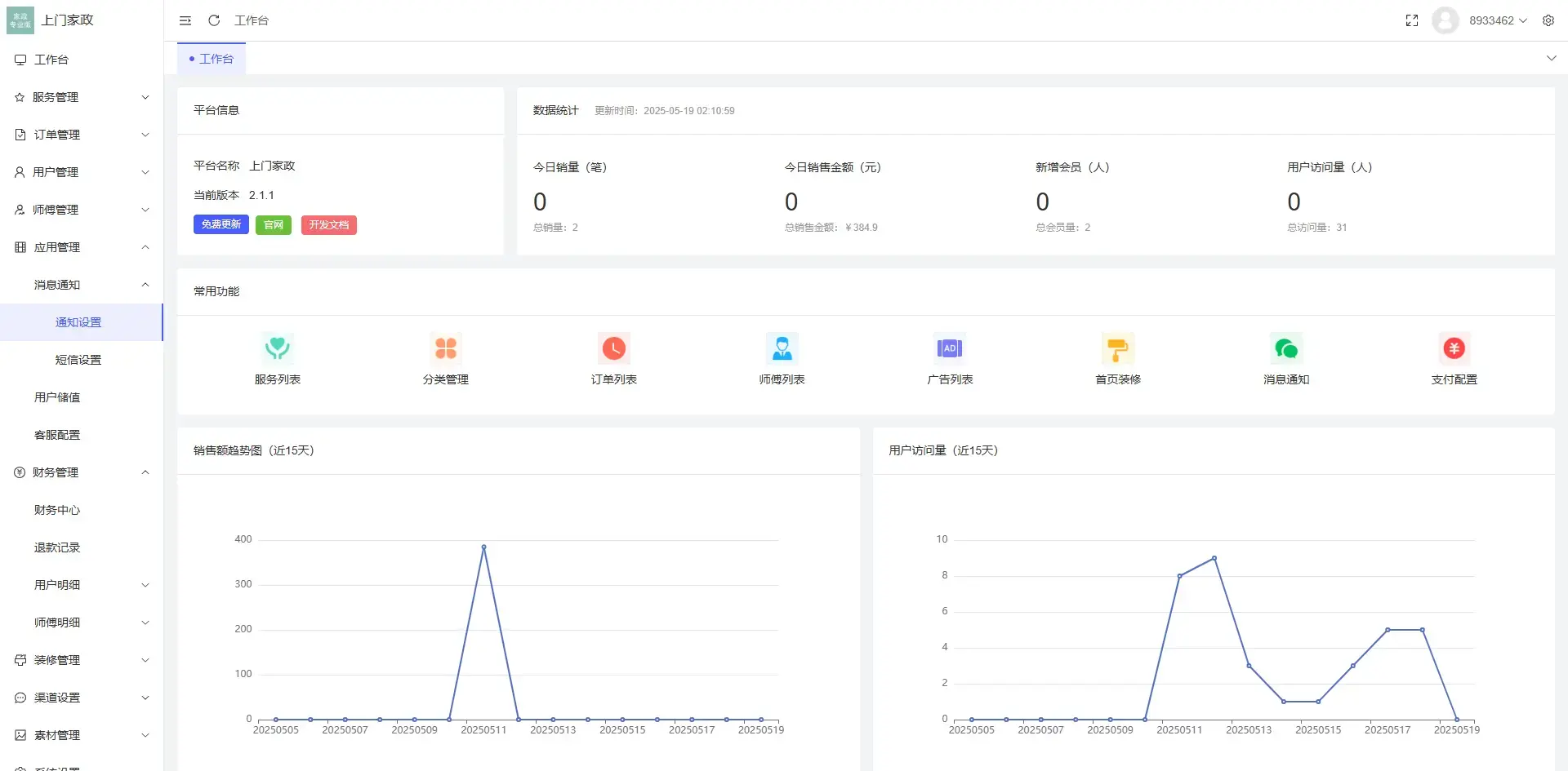 最新版likeshop上门家政服务源码,基于likeadmin-php开发的上门预约系统,提供全部前后台无加密源代码,拥有强大的地图定位、在线预约、系统派单、后台派单、下单支付、核销订单等功能模块,用户端和师傅端完美融合,前端Vue,uniapp 测试环境:MySQL5.7,PHP8.0,框架Thinkphp,版本号2.1.1 有小程序和H5端,商品服务价格可设置多规格,首页diy设置,随时随地都能接单;可自定义预约时间段,无需排队,降低时间成本;全方位满足用户需求 支付支持微信,支付宝官方支付 地图定位接口对接的腾讯地图 储存支持本地和oss 短信对接阿里云和腾讯云 师傅端支持保证金和每日限单功能 支持设置指定城市开放接单,适合本地运营 搭建教程: ·1.系统环境:MySQL5.7,PHP8.0(安装扩展fileinfo) ·2.新建站点,选择新建数据库 ·3.把源码里面的server文件夹里面的文件打包上传到网站根目录解压4.运行目录设置为Public,伪静态设置为Thinkphp 5.访问首页在线安装 关闭移动端右下角调试图标教程 根目录.env文件,把1改成false即可 声明:本站所有文章,如无特殊说明或标注,均为本站原创发布。任何个人或组织,在未征得本站同意时,禁止复制、盗用、采集、发布本站内容到任何网站、书籍等各类媒体平台。如若本站内容侵犯了原著者的合法权益,可联系我们进行处理。